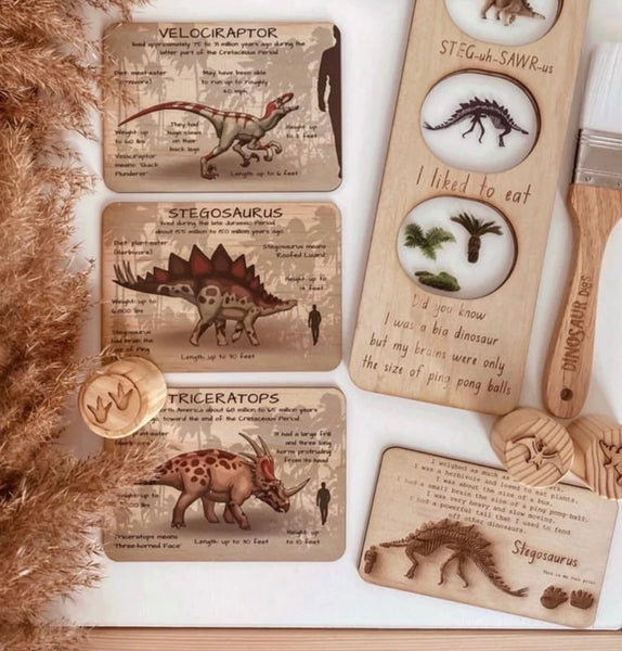 Ignite your child's’ fascination for Dinosaurs with our set of 8 Dinosaur Cards. Kids can learn all about the names, sizes and fin facts!