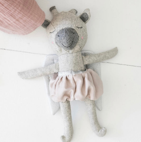 Made with the softest wool blend fabric, Mildred sometimes forgets she is a giraffe and plays the role of a fairy