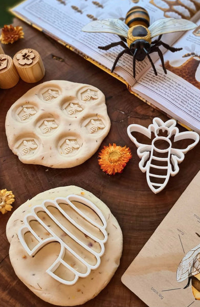 Add another element to your little one’s sensory play, with one of our originally designed and made dough cutters! They can be used in playdough, kinetic sand, air dry clay and for baking. We 3d print our cutters from PLA, which is a plant-based bioplastic derived from renewable resources, such as corn starch, tapioca root or sugarcane. Hive cutters measure 10 x 8.5cm. Please see last photo for small person hand scale (against the bee cutter, which is relative in size).