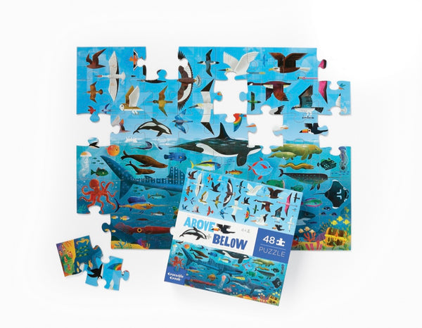 Crocodile Creek's 48pc Above & Below puzzle teaches kids opposites! What's above? What's below? Teaches children to be inquisitive and observant. Suitable for ages 4+
