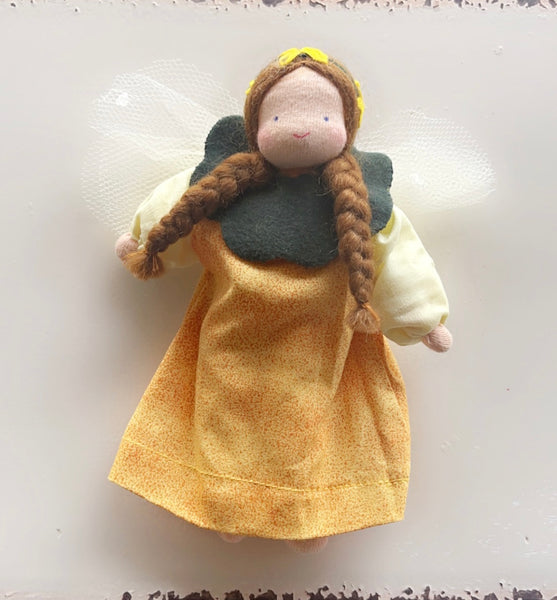 Lovingly handcrafted in Brazil by Evi, these adorable mini fairy dolls are magical. Made from pure cotton fabrics and stuffed with pure wool, each doll is bendable with little mesh wings, and a flower garland in their braided hair.