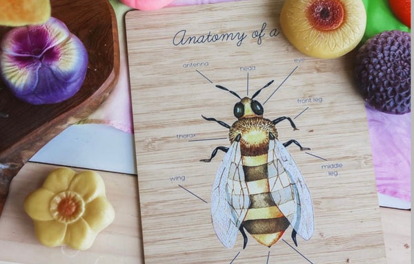 This stunning bee anatomy is printed on fine bamboo wood to give it that sleek look. The anatomy contains the insect in a watercolour finish and names each part of the insects body.