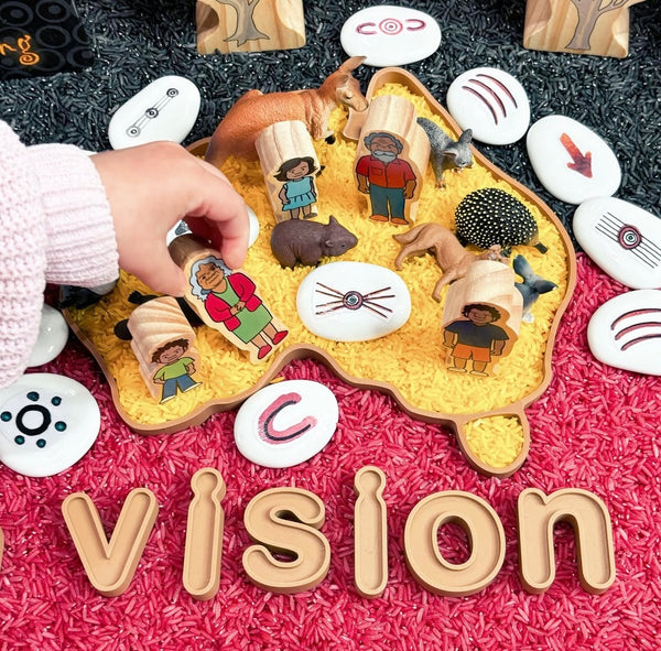 This Indigenous wooden family of 6 is a great resource to encourage role-playing while learning about Aboriginal culture. This wooden toy set is a fun way to introduce diversity and inclusion while encouraging children to feel positive and confident while they learn through open-ended play. The images are printed using non-toxic heat transfer technology and sealed with a clear matt varnish to ensure they last for years to come.