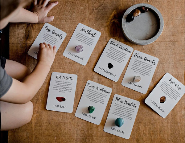 The Crystal Affirmation Cards come with 8 affirmations and 8 tumble stone