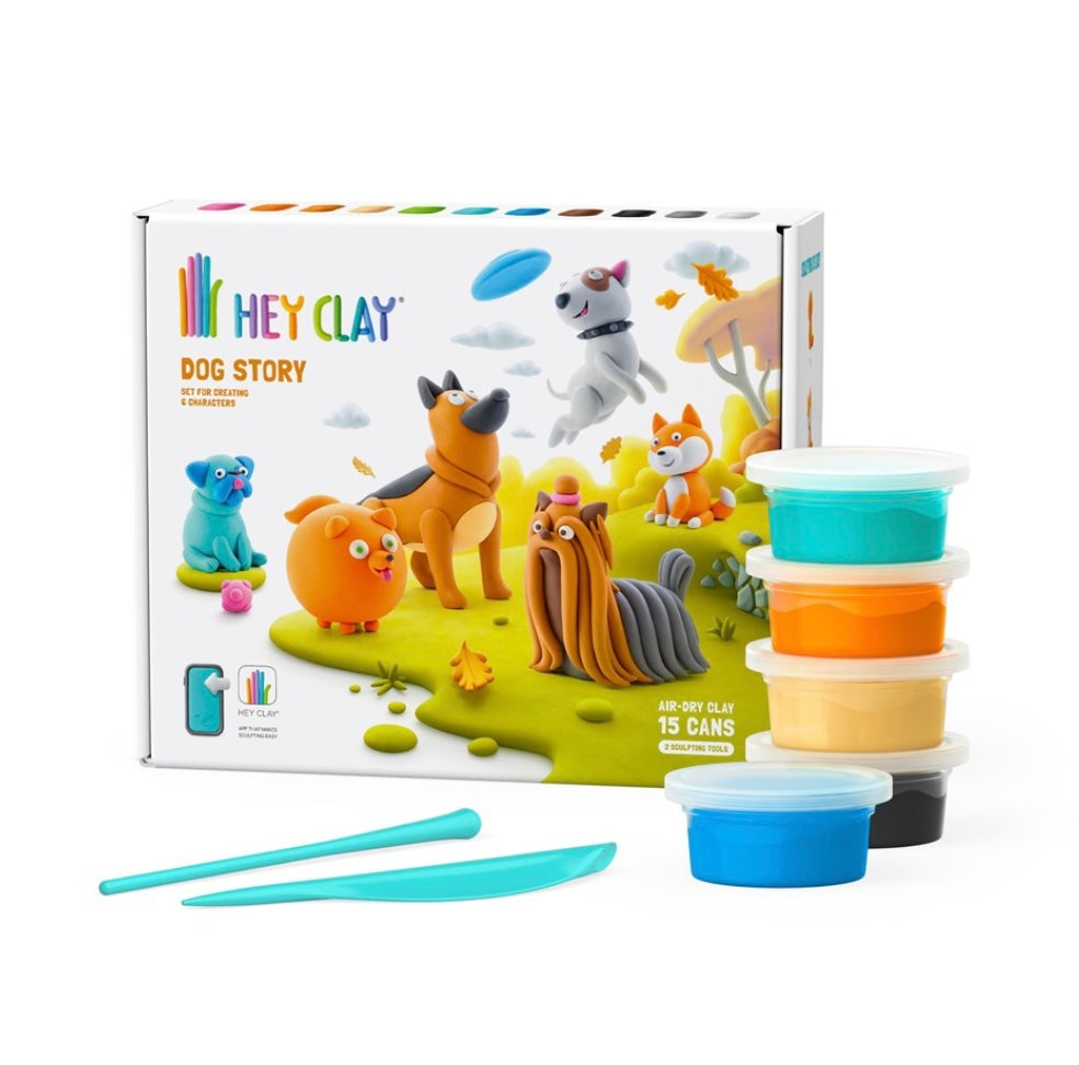 Become a professional clay artist! This vibrant clay is soft, lightweight, non-sticky, nontoxic, and stain-free - perfect for young artists taking their first step into the magical world of clay creativity. The fun starts once you download the free app and gain full access using the code included in the box. Pick one of the six dog characters -Spitz, Yorkie, Pug, Shepherd, Bull Terrier, or Shiba Inu. Then, grab the sculpting tools and follow along with the interactive 3D step-by-step instructions to masterfully mold it, one simple shape at a time. Spheres, cylinders, facial features, textures, and more... Kids learn real sculpting techniques without even realizing it! Jumpstart your young artist's new career with the wild and wondrous Hey Clay Dog Story set.