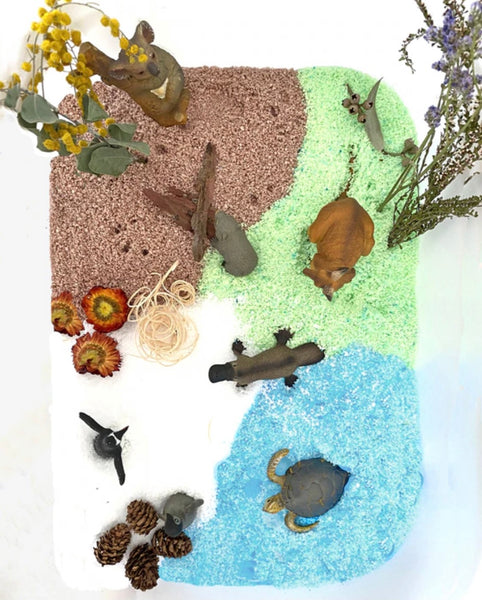 This listing is for Nature's Landscapes which contains: white, earth, blue and green flurry. Perfect for small world play, you can create your own nature play!