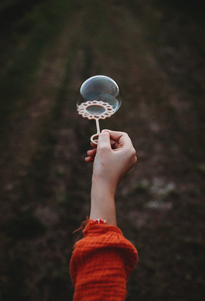 Bubble play is a beautiful, immersive way to nurture sensory learning and motor skills, while establishing hand preference, encouraging imagination and language skills to describe the enchanted world they are creating.