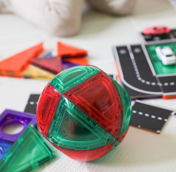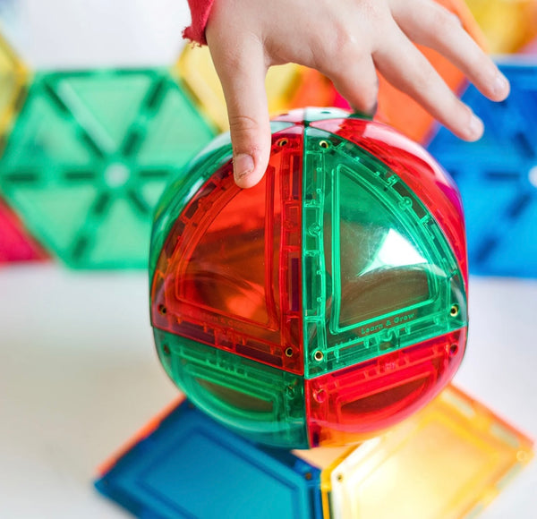 This unique and exclusive set to Learn & Grow Toys will add a new level of magnetic play to your creations. Build boats, balls, rocket ships, monuments, fortresses and more! The possibilities are endless with this new exclusive curved triangle design.