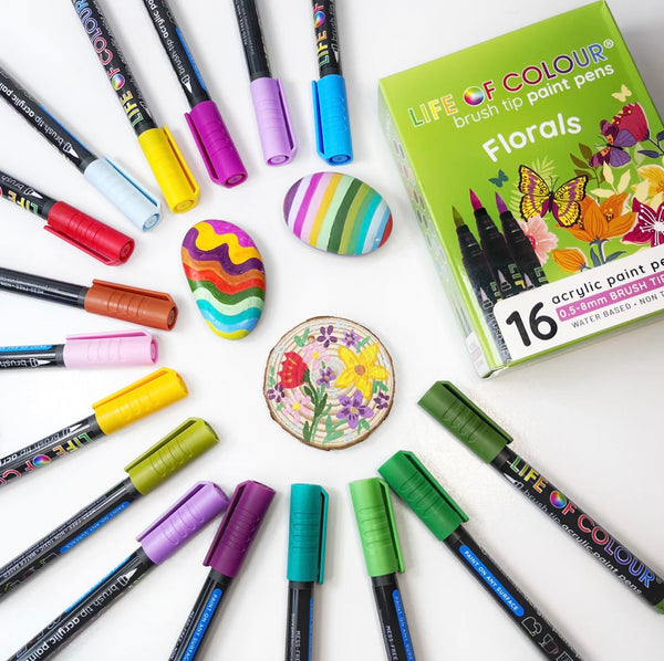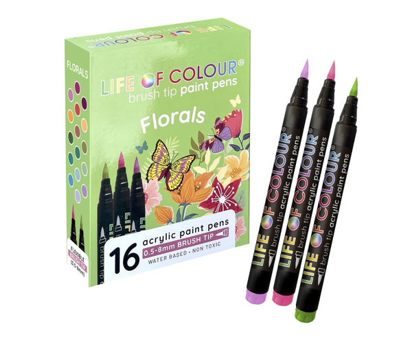 Floral Colours Brush Tip Acrylic Paint Pens - Set of 16