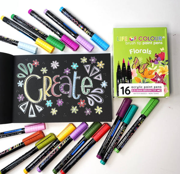 - The Florals colour pack has 16 brush tip acrylic colours, all from the natural environment for creating impressive artwork of flowers, trees, sky, butterflies, birds and so much more!