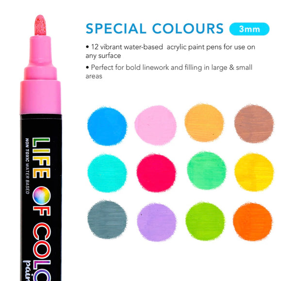 Special Colours 3mm Medium Tip Acrylic Paint Pens - Set of 12