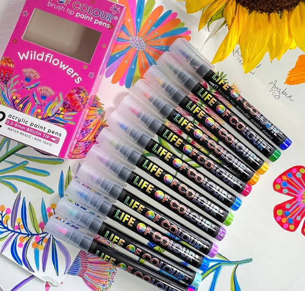 Wildflowers Brush Tip Acrylic Paint Pens - Set of 12