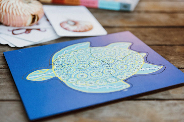 Fish Billabong Puzzle 240 x 200mm, 12 pce wooden jigsaw, including Dreaming story and activities.