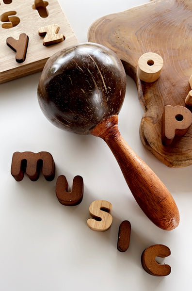 You won't mind your children shaking away with this maraca that produces a very pleasant wooden sound. Please note not recommend for children under 2.