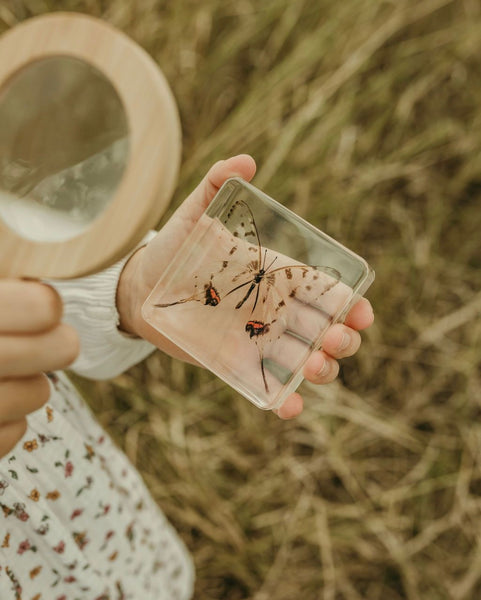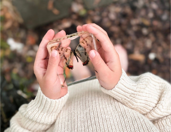 Designed for educational and sensory play, it enhances tactile and visual exploration, fostering a sense of wonder and learning about butterflies and nature. At 75x75cm, it provides a substantial and engaging display, perfect for immersive play and educational activities.