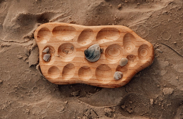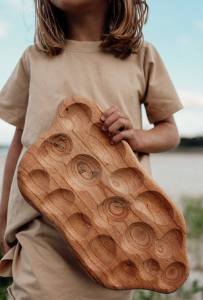 A solid hand carved piece of wood inspired by the rock formations on Lorne Beach (Victoria, Australia).