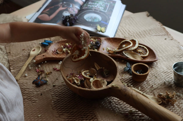 This traditional teak scoop is still used to scoop water over oneself whilst washing. It can also double-up as a saucepan in home-corner play.