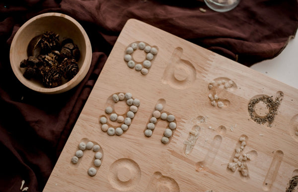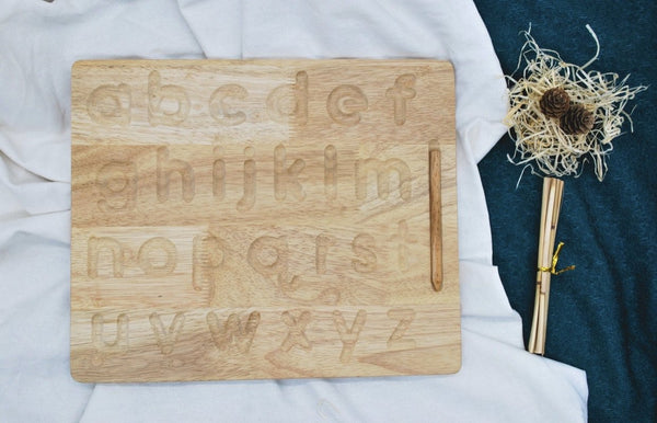 Beautiful tracing board that helps little one learning how to write the alphabet. This board come with a wooden stylus. This product is designed for toddlers to have fun with writing. The arrow will help them to make the right move. The board can also be as a filling board with coloured sands or play dough as a fun toy to learn the letters. The product is made out of Rubberwood, finished with natural child safe oils.