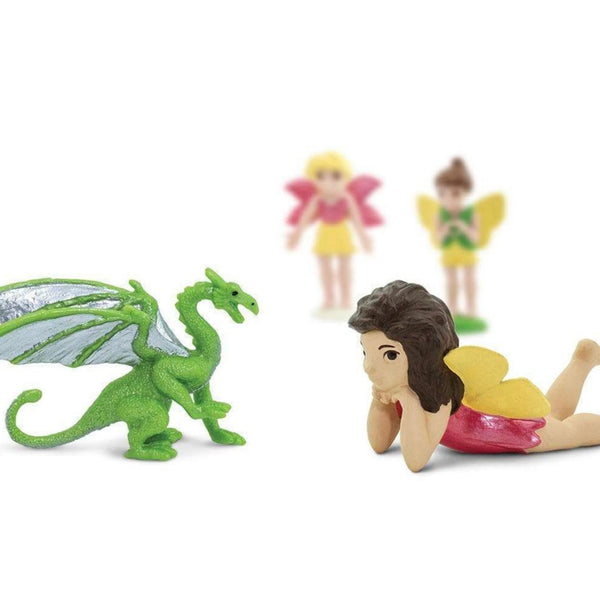 - Characteristics:This set includes 6 figures: the Daydreaming Fairy, the Happy Fairy, the Loving Fairy, the Friendly Fairy, and Drake and Tiamat the dragons. Despite their fearsome nature, these dragons are pint-sized, making them the perfect pals for fairy friends.