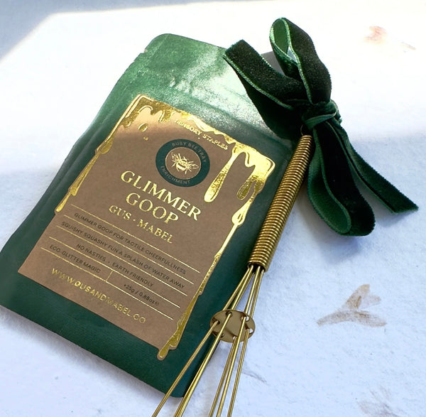 • Note: Glimmer Goop may pose a choking hazard; vigilance is always required. Not suitable for our littlest loves 0-3 or those that like to put things in their mouth. Yes, it is non-toxic, but our Glimmer Goop is not intended for human consumption, even though it's tasteless!