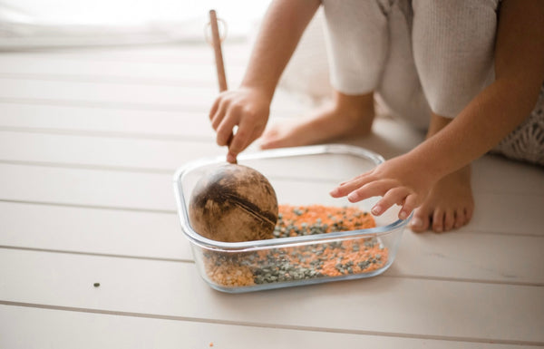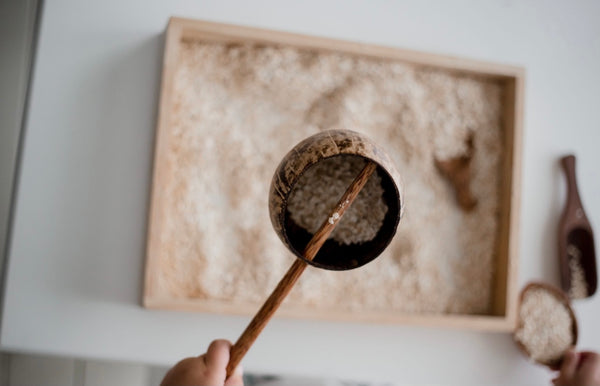 Mini water scoop perfect for sensory and loose parts play offering problem solving and gross/fine motor skill development.