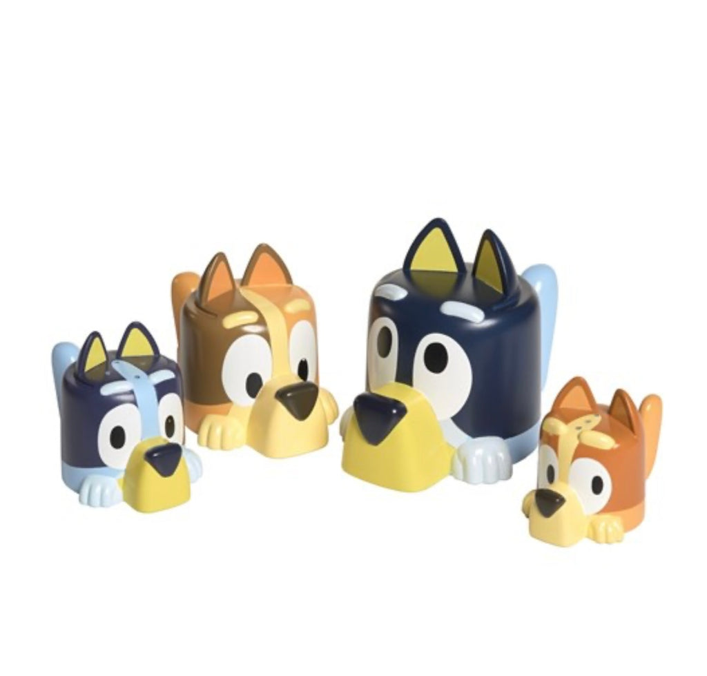 Bluey Family Pourers are a perfect fun addition to every bath time. Get little ones splish splashing with this adorable set of Bluey and Family stacking, nesting and pouring cups. This set includes Bluey, Bingo, Chilli (Mum) and Dad (Bandit). With 4 separate character jugs to play with, each one has a different pouring holes to discover. Bluey Family Pourers can even be used in the garden, in paddling pools or at the beach! This bath toy is brilliant for building confidence in water, helping with hair washing and, when bath time is finished, the pourers neatly nest together for tidy storage on the side of the bath. Suitable for 18 months +