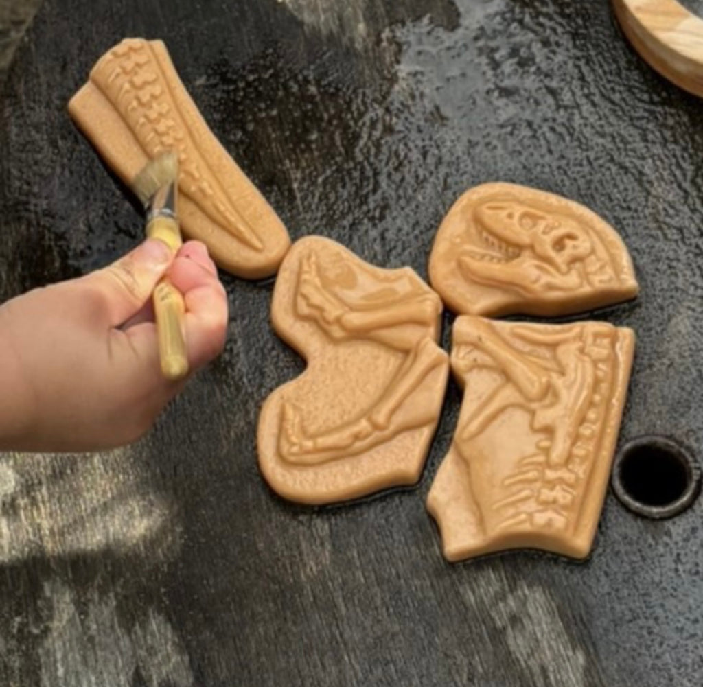 Budding fossil hunters will love these chunky, tactile skeleton pieces that fit together to create two iconic dinosaurs: the mighty Tyrannosaurus rex and the armoured Ankylosaurus. Crafted from a durable stone mix, these fossils are perfect to bury in sand or soil for children to dig up and assemble, developing observation, spatial reasoning, and critical thinking skills.