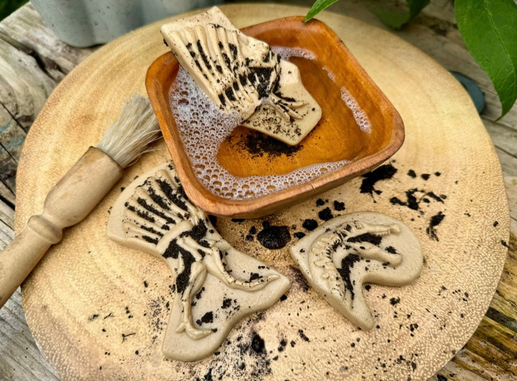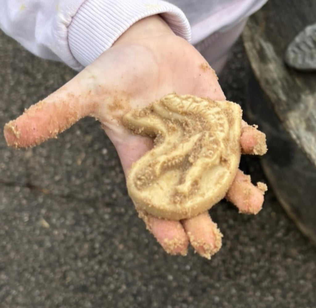 Children can make impressions of the skeletons in play dough, exploring the different textures and shapes of the imprints.