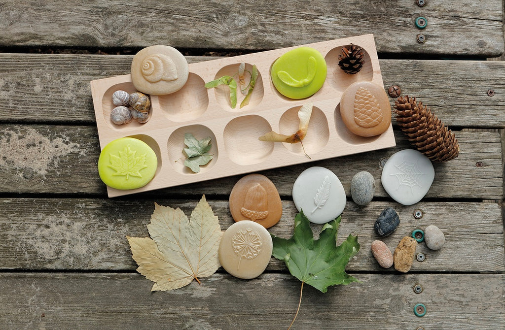 These beautifully tactile stones reflect the natural treasures children might discover in the natural world. Designed for outdoor learning, investigative play and forest school, the stones are robust for lots of outside adventures! They are durable enough to be used in water, soil, mud and play clay, and are easily cleaned. Wonderfully sensory, the details on the stones can be felt as well as seen. Go on a nature hunt and compare with the real things, make imprints in play dough and take rubbings using wax crayons. Children will delight in such activities, learning about nature at the same time.