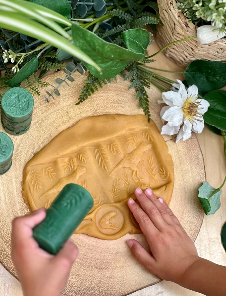 These creative rollers offer an ingenious way for children to explore dinosaurs and their landscapes. Ideal to provoke curiosity, extend knowledge and develop fine motor skills, the extinct creatures will come to life as children roll into play dough, clay or sand, and stamp to make wonderful prehistoric scenes. Children can count the spines on the stegosaurus and stamp to discover which dinosaur emerges from the large eggs!