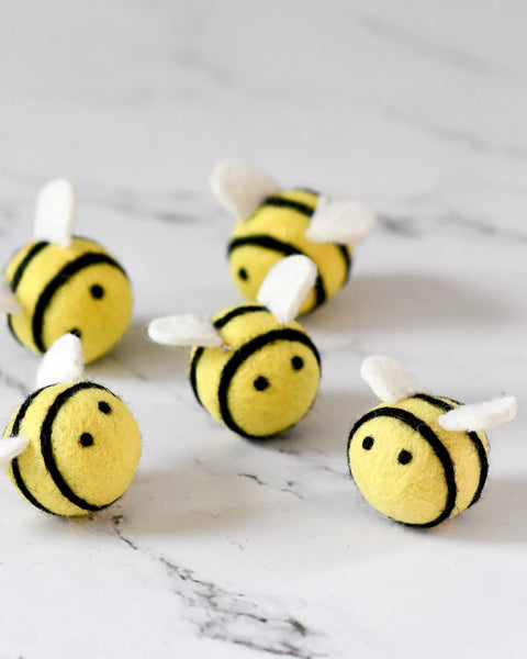 Small felt bees in a set of 5. These little felt bees are ideal for Loose Parts Play and Small World Play.