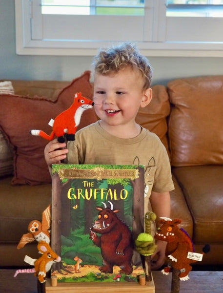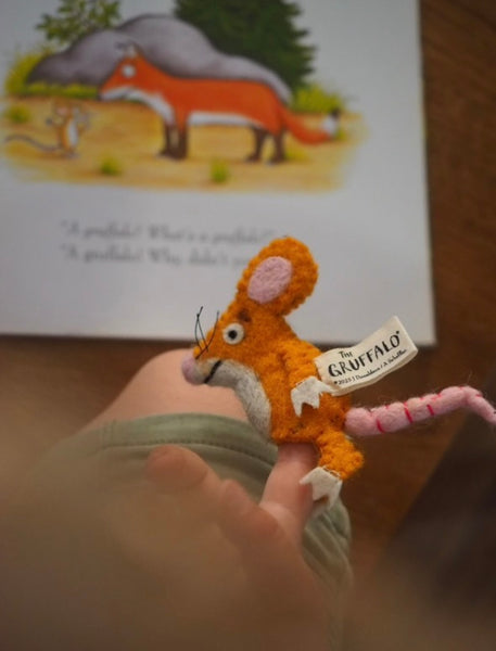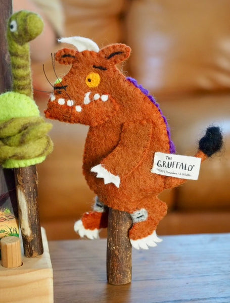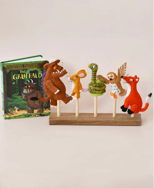 Step into the deep, dark wood and bring the beloved tale of The Gruffalo to life with our officially licensed Gruffalo Finger Puppets Set. Created in collaboration with Magic Light Pictures, this enchanting play set features all the iconic characters from Julia Donaldson and Axel Scheffler’s modern classic, The Gruffalo, Mouse, Fox, Snake, and Owl, each lovingly handmade from natural wool felt.