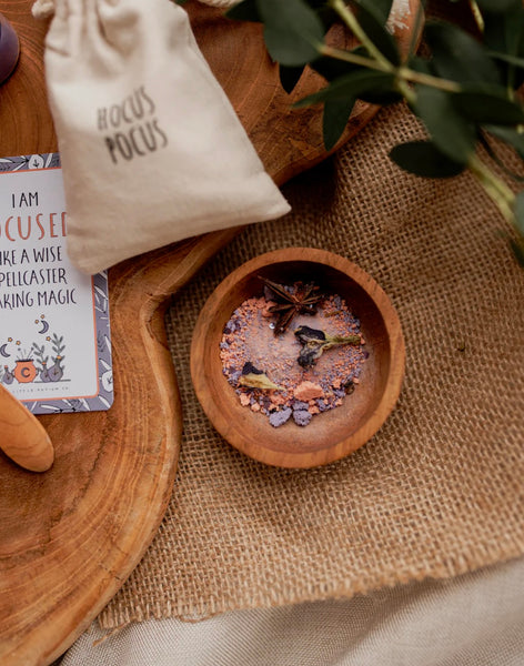 Ingredients: bicarb soda, citric acid, mica, BioGlitter®, star anise, cinnamon, butterfly pea flowers + fragrance oil.