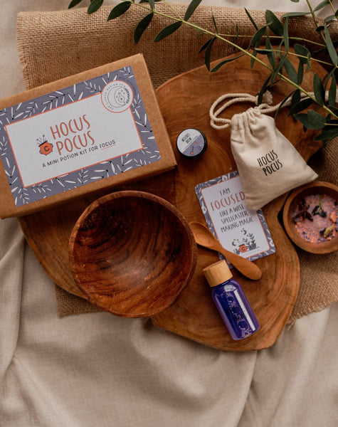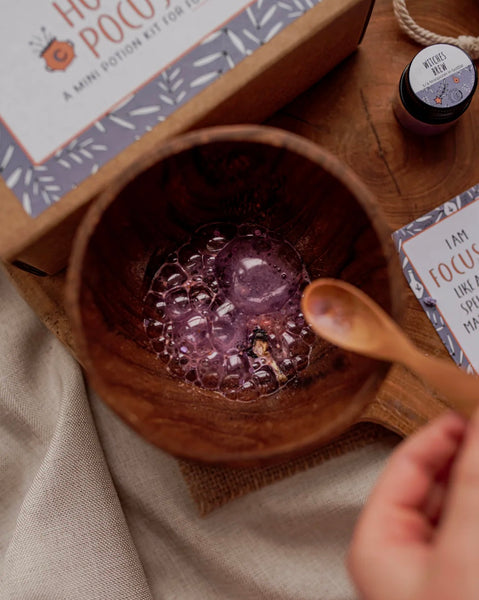 A mini potion kit about witches and wizards. Mix it up and watch it fizz to make potions about being focused on a task at hand.