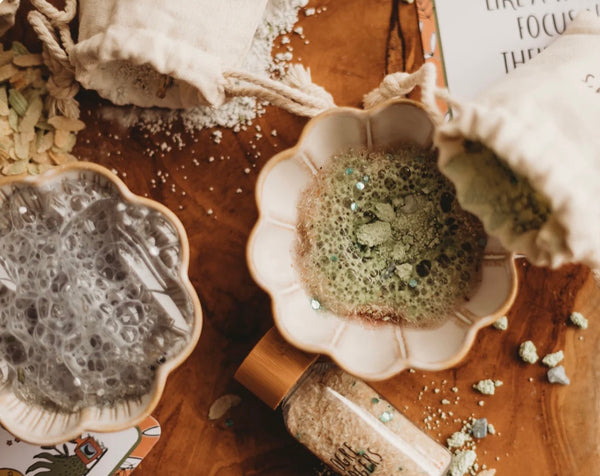 Ingredients List: Bicarb Soda, Citric Acid, Salt, Mica, Bio Glitter, Butterfly Pea Flowers and Powder, Rice Flakes, Psyllium Husk and Distilled Water