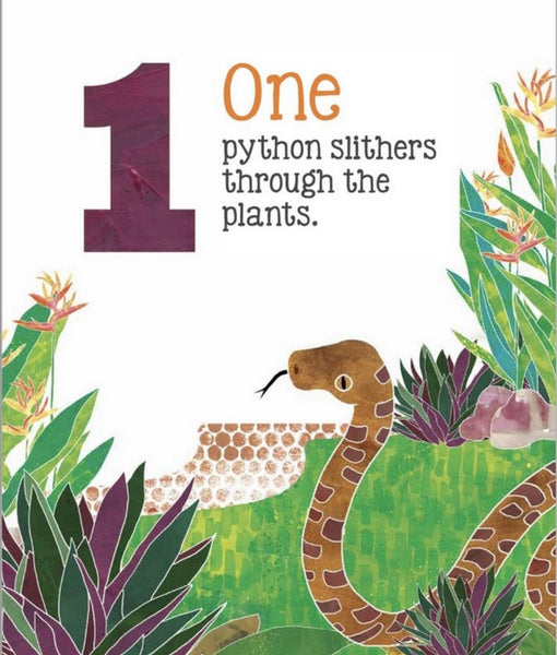 This paperback edition with a new cover of Bronwyn Houston's book makes counting from one to ten so much fun! From kookaburras to ants to dragonflies, her rich colourful illustrations are filled with texture and movement.